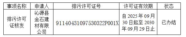 標題沁源縣金石建材有限公司排污許可證重新申領核發公告