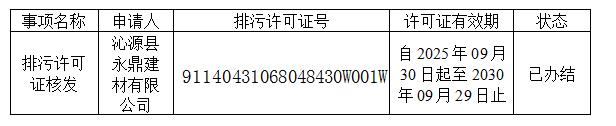 標題沁源縣永鼎建材有限公司排污許可證重新申領核發公告