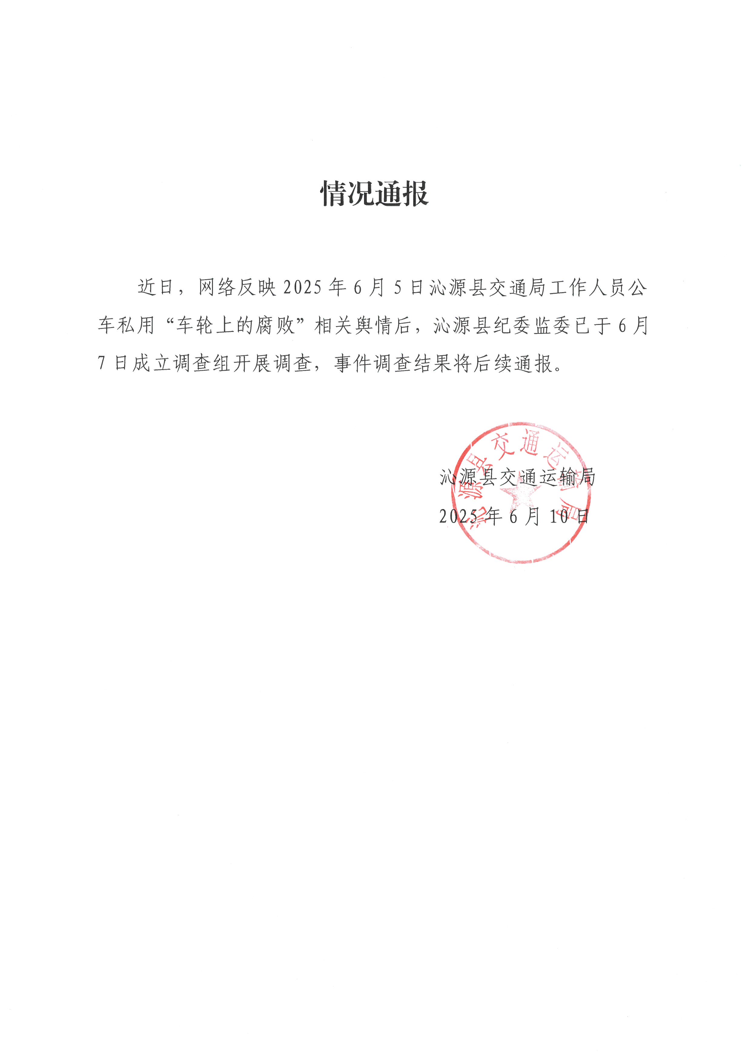 | 發(fā)文機(jī)關(guān):沁源縣交通運(yùn)輸局 | 主題詞:通報(bào) |