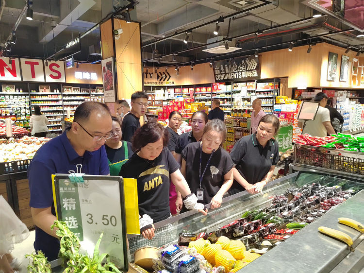 ????長治市局食品流通科科長田斌一行對我縣校園周邊食品流通單位是否銷售煙草制品和酒類情況、大型超市“兩個責任”落實情況及食品安全進行督查,副局長趙靜帶領食品股、城鎮所陪同檢查。