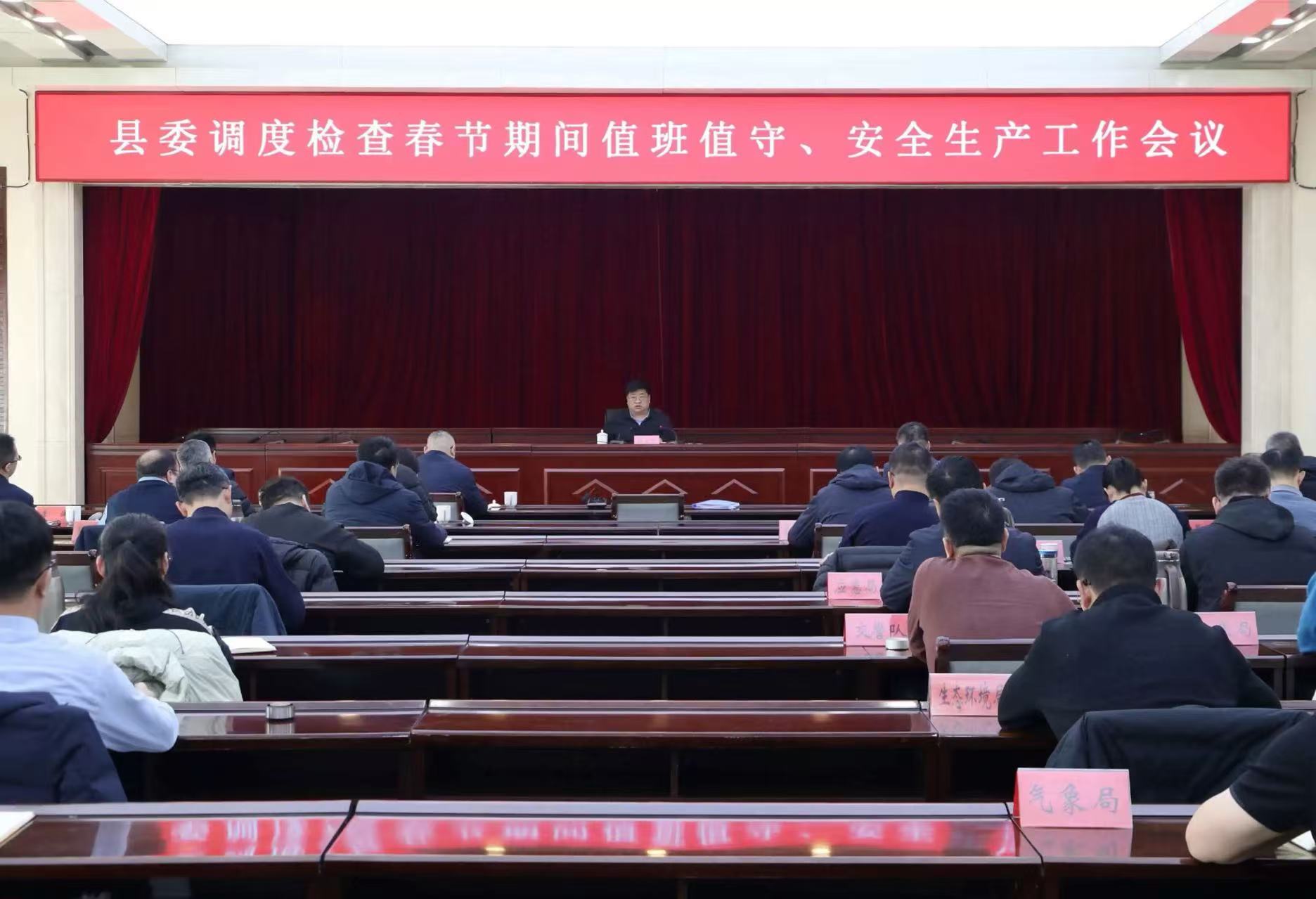 趙永進強調,要認真貫徹落實市委調度檢查春節期間值班值守、安全生產工作會議精神,統籌做好全縣各項工作,確保群眾度過一個歡樂祥和的節日。要抓好節日期間交通安全監管,強化重點路段隱患排查,堅決整治各類交通違法行為,全力保障群眾平安出行。要毫不放松抓好護林防火,嚴禁火源進山入林,嚴管煙花爆竹燃放,強化源頭管控,堅決做到防早防小。要狠抓安全生產責任落實,加大煤礦、非煤礦山、危險化學品等行業領域安全監管,聚焦景點景區、賓館酒店、商超娛樂、居家餐飲等場所,開展火災隱患排查整治,筑牢安全防線。要強化人員密集場所安全防范、社會面巡防管控,排查化解各類矛盾糾紛,堅決維護社會大局穩定。要做好民生保障供應,加強水電氣暖等設施設備巡查,強化市場供應和質量監管,滿足群眾消費需求。要做好應急值班值守,嚴格落實24小時專人值班和領導干部在崗帶班、外出報備、請示報告等制度,確保工作銜接順暢、應急處置高效。要筑牢節日廉潔防線,嚴格執行中央八項規定及其實施細則精神,堅決抵制各種不正之風,營造清正廉潔、健康文明的節日氛圍。