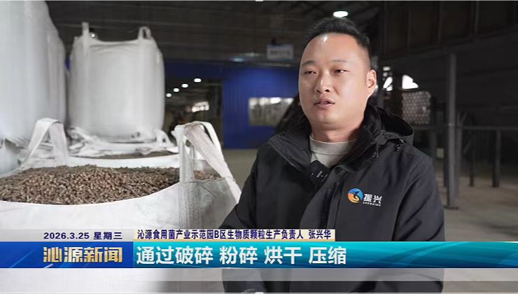 一根小菌棒,連接著大產(chǎn)業(yè)。為了不讓廢棄菌棒成為環(huán)境負(fù)擔(dān),園區(qū)還配套建設(shè)了生物質(zhì)顆粒廠,專門回收全縣的廢棄菌棒和木材邊角料。在這里,這些“廢料”經(jīng)過破碎、烘干、壓縮,變身成了環(huán)保的生物質(zhì)顆粒燃料。