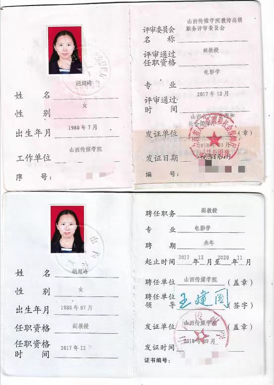 胡超峰,女,山西沁源人,中國傳媒大學(xué)碩士,副教授,山西傳媒學(xué)院山西電影學(xué)院戲劇影視導(dǎo)演專業(yè)專職教師。2020 年度山西省三八紅旗手,擔(dān)任編劇的網(wǎng)絡(luò)大電影《古墓迷蹤》2017 年 9 月騰訊、優(yōu)酷、搜狐三大視頻網(wǎng)站播映;擔(dān)任編劇的網(wǎng)絡(luò)大電影《整蠱先鋒隊(duì)》2018 年 2 月 22 日騰訊獨(dú)家播出;創(chuàng)作劇本《秦晉之好》入圍 2021 第五屆平遙國際電影展產(chǎn)業(yè)板塊“平遙創(chuàng)投”單元;創(chuàng)作劇本《狗爸爸》發(fā)表于《電影文學(xué)》2023 年第 5 期。