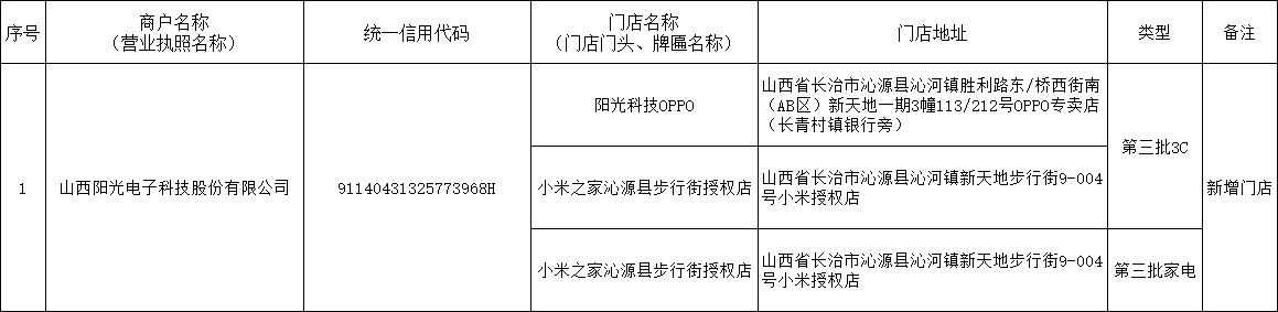 附件:沁源縣消費品以舊換新第三批擬參與主體公示名單